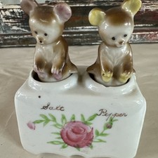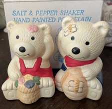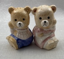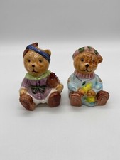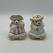 Vtg Cottagecore porcelain teddy bear salt and pepper shakers