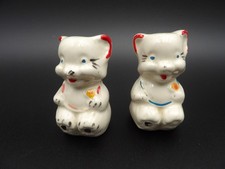 Vintage Ceramic White Teddy Bear Salt & Pepper Shakers, paint shows aging wear