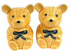 Vintage Teddy Bear Tan Yellow Orange Bow Ribbon Salt and Pepper Shakers