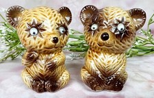 Vintage Kitsch Googly-Eyed 2-3/4" Ceramic Teddy Bear Salt & Pepper Shakers