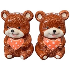 Vintage "Rare" Ceramic Adorable Tender Hearted Teddy Bear Salt & Pepper Shakers
