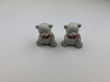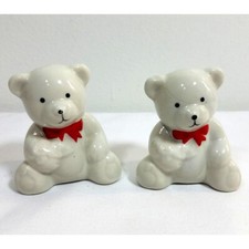 Vintage Teddy Bear Salt & Pepper Shaker Set White Porcelain Bear Red Bow Ties 1B