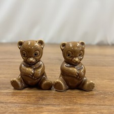 Vintage Brown Teddy Bears Smiling Anthropomorphic Salt and Pepper Shakers