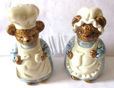 Vintage Chef Teddy Bears Salt & Pepper Shakers Set
