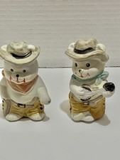 Cowboy Teddy Bears Salt And Pepper Shakers Ceramic Vintage
