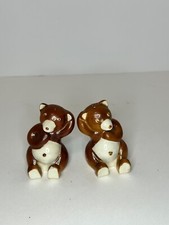 Vintage Teddy Bears Salt And Pepper Shakers Ceramic Small 2 Inches Tall Brown