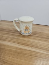 VTG Otagiri Beige Teddy Bear Bow Flowers Ceramic Sugar Bowl Lid & Creamer Set