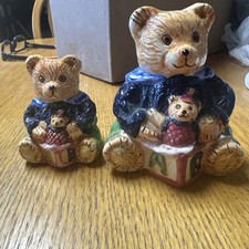 Vintage ceramic TEDDY BEARS SALT AND PEPPER SHAKERS AND TOOTHPICK HOLDER SET