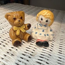 Avon Vintage Raggedy Ann and Teddy Bear Ceramic Salt & Pepper Shakers