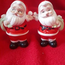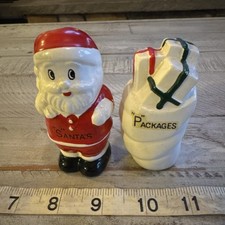 Vintage Ceramic Santa Claus & Toy Bag Salt & Pepper Shaker Christmas Japan