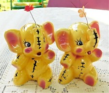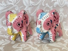 Vintage Stuffed Toy Ceramic Hand PaintedElephants Salt and Pepper Shakers Japan