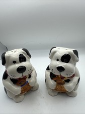 Salt Pepper shakers Puppy Vintage with toy biscuit dog ceramic Dalmation
