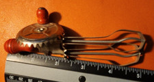 Vintage Mini Kitchen Utensil Toy Egg Beater Hand Mixer Red Wood Handle