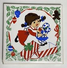 Vtg Christmas Tile Hot Plate Trivet Square Retro Kitchen Girl Toys Jasco Tawain