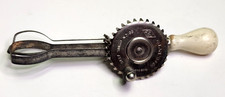Vintage A&J Hand Gear Crank Manual Egg Beater Child Toy Wood Handle 1923 USA