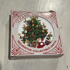 Vintage Ceramic Tile Trivet Coasters 1981 Jasco Christmas Tree/Toys Set Of 2~New