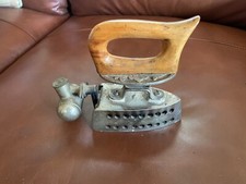 Antique Vintage Charcoal Coal Cast Iron Sad Iron Press Wood Handle Rooster Latch