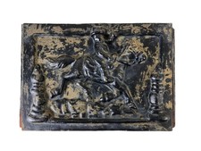 Antique Cast Iron Stove Plate or Mailbox Front Panel Man on Horse