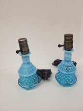 Vintage Fenton Glass Blue Opalescent Hobnail Boudior Lamp Set
