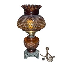 Fenton Vintage 60's Amber Hobnail 3 Way Hurricane Parlor Lamp Art Nouveau Base