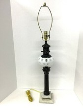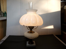 Vintage Fenton White Opalescent Coin Dot Glass Lamp Marble Base
