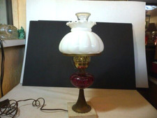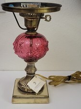 FENTON Cranberry Glass Lamp - Beautiful and In Working Condition Marble Antique