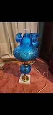 Vintage Fenton Style Powder Blue With Applied Enaming Lamps 2 Lamps In This Lot