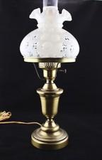 VTG Fenton 1984 White Poppy Student Lamp Ruffle Shade Brass Frame Marble Base