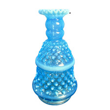 Vintage Fenton Art Glass Blue Opalescent Hobnail Boudoir Dresser Lamp Base Only