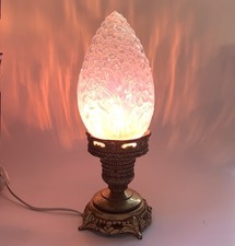 Antique Pink Hobnail Dresser Night Light in Brass Metal 12"