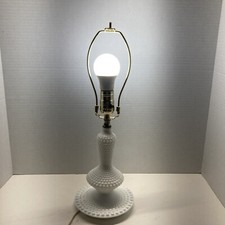Vintage Mid-Century Modern Fenton White Milk Glass Hobnail Table Lamp Works 13"