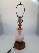Vintage Fenton Pink Milk Glass Boudoir 18" Table Lamp with Wood and Brass Works
