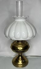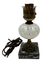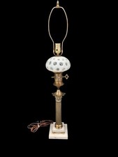 ANTIQUE!! Brass Plated Hurricane Table Lamp Milk Glass Melon Fenton Shade