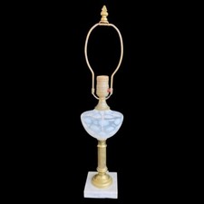Fenton? Gray Blue Coin Dot Table Lamp Antique Brass Marble Base