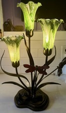 Vintage Tiffany Style Luminarie Table Lamp Green Swirl Tulips Red Dragonfly 21"