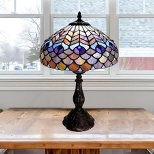 Tiffany Style Lamp Floral Stained Glass Lamp Desk H-12 1/2