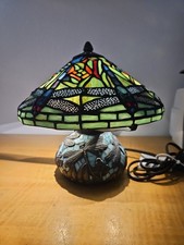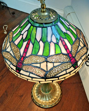 Tiffany Style VTG Stained Glass Dragonfly Bankers Lamp