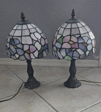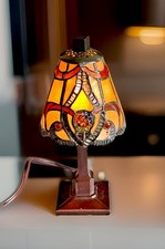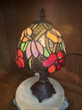 Small Vintage Tiffany Style Stained Glass Table Lamp