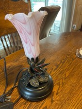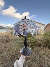 Vintage 1970 Dale Tiffany Table Lamp Floral Stained Glass 12.5" Tall Pink Blue
