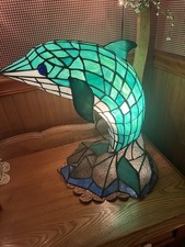 Vintage Tiffany Style Stained Glass Dolphin Lamp-9.5β Tall Beautiful-RARE!