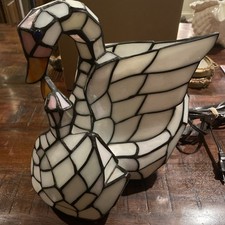 Bieye L10773 White Swans Tiffany Style Stained Glass Accent Table Lamp Night ...