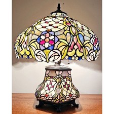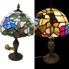 Vintage Tiffany Style Stained Glass Bedside Table Lamp Floral Pattern 14β