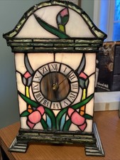 Tiffany Style Stained Glass 10.5β Mantle Clock Lamp Light Flowers Domed Top EUC!