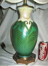 ANTIQUE QUEZAL ART DECO GLASS TIFFANY FAVRILE STEUBEN PULLED FEATHER VASE LAMP