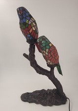 READ Double Parrot On Branch Tiffany Style Stained Glass 21" Lamp WORKS