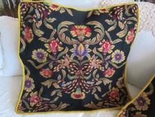 Vintage Aubusson style Old World Pattern on BLACK NWOT Needlepoint Pillow 24"