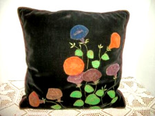 1890s ART NOUVEAU AGED VELVET APPLIQUE PILLOW FEATHER FILL TICKING PETUNIAS RARE
