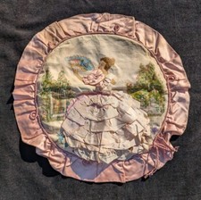 Antique Pillow 1920's Round Embroidered Elegant Lady Southern Belle Lace 15"