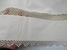 ANTIQUE LINEN LAYOVER FLAT TOP PILLOW SHAM w HAND TATTED DOUBLE BORDER 23" x 90"