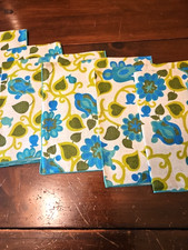 Vintage Hippie Mid-century Fabric Napkins (10) Floral Pattern 1960's Blues